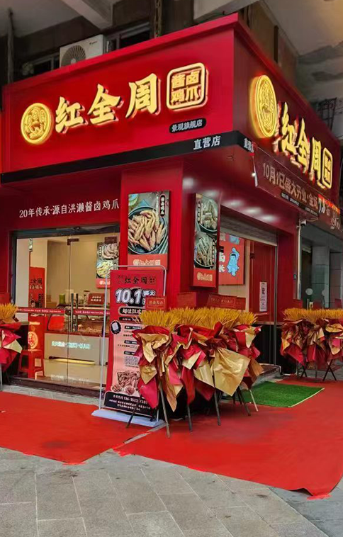 紅全周品牌創立于2012年,其生產總部坐落在以“紅全周雞爪”聞名的福建泉州市南安洪瀨鎮,經張福來師傅多年研制而成的獨家秘方,獨特的鹵制工藝,以“鮮、香、韌、辣”的特點,贏得廣大食客的交口稱贊。紅全周繼承中華美食傳統,堅持以“細微處見風范,毫厘間定乾坤”的服務準則,遵循現代健康飲食理念,精選上等食材,致力為消費者提供安全、健康的美食新體驗。